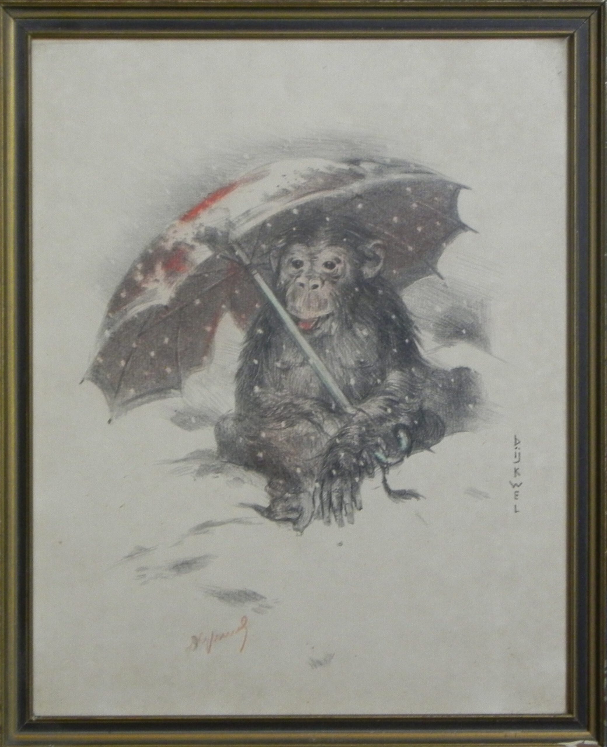 Dijkwel, een bescheiden maar zeker één van de zeer getalenteerde oud-leden van Pictura Dordrecht. Zijn liefde voor dieren spreekt uit al zijn werken. Ook deze vertederende schets van een aap is niet alleen levensecht maar de aap straalt een bijna menselijke tevredenheid uit. Bravo voor de kunstenaar Theo Dijkwel.