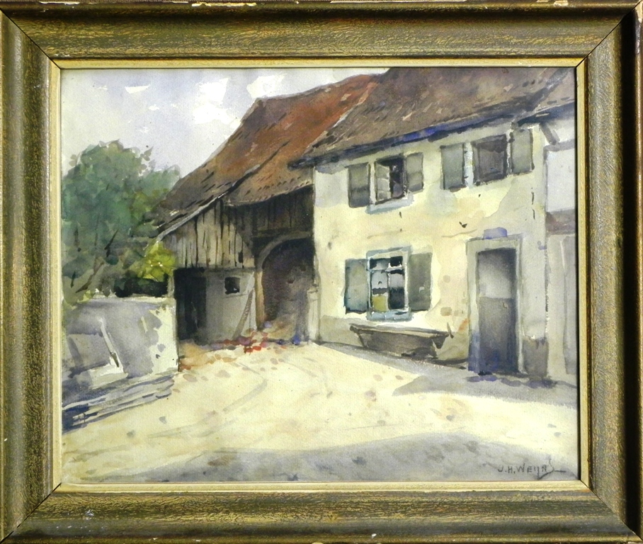 Weijns was een meester in het vastleggen van buitengebieden. Met een bijzonder oog voor romantiek weet hij als geen andere schilder de kenmerken van het gebied waarin hij vertoefde weer te geven. Deze Zwitserse boerderij straalt tegelijkertijd armoe, trots en degelijkheid uit. Deze aquarel zou zo in een geschiedenisboek over de streek waar het geschilderd is als illustratie kunnen worden afgedrukt. De boerderij bevindt zich ergens in Zwitserland.
