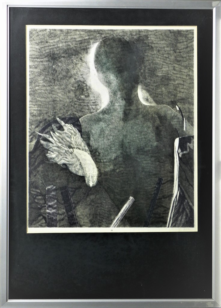 Kris (Chris) Buursen is een veelbelovend kunstenaar / graficus. Deze lithografie is een voorbeeld van zijn creativiteit. Wat hij precies voorheeft met deze voorstelling laat zich raden. Een naakt – gezien op de rug – met een (vredes?)duif doet vermoeden dat hij vredelievendheid wil koppelen aan onschuld? Wij laten onze conclusie graag aan u over.
