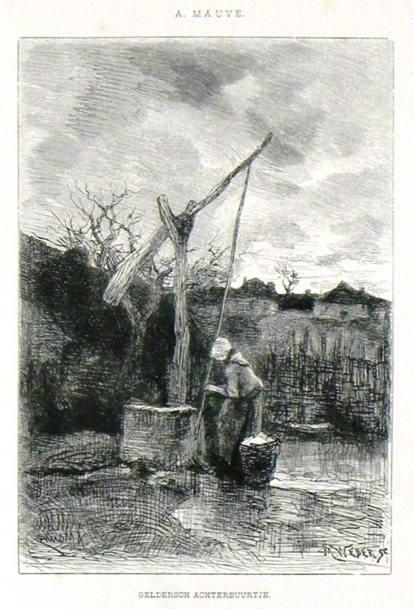 Deze houtgravure werd gesneden door M. Weber voor de uitgever Tjeenk Willink (zie ook Eigen Haard YYY.000 op de website van Caput Ovis). In totaal werden er ongeveer dertig kunstwerken ofwel gesneden in hout dan wel via de autotypetechniek vermenigvuldigd als geschenk aan nieuwe abonnees van het tijdschrift Eigen Haard. Deze houtsnede betreft een bekend werk van Anton Mauve.