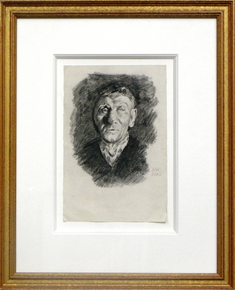 Een knap portret door Isaac Israels. Helaas weten we niet wie hier wordt uitgebeeld. Wellicht al door hem op zeer jonge leeftijd getekend (gezien ook de ‘boertige kleding).