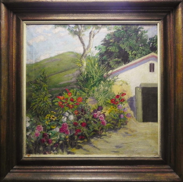 Landschap vermoedelijk in Zuid-Europa gemaakt. De kenmerkende stijl van Ligtelijn (zonovergoten) straal blijdschap uit zoals zoveel van zijn werken.