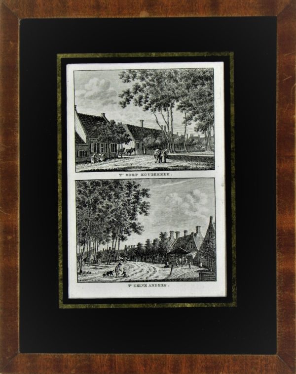 Twee oude gravures – op één blad – van het centrum van Oudekerk aan den Rijn. Tegenwoordig deel uitmakend van de gemeente Alphen aan den Rijn.