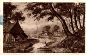 Onbekend uit welke periode de de voorstelling op een kunstkaart afkomstig is.