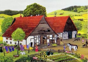 Onbekend uit welke periode de de voorstelling op een kunstkaart afkomstig is.