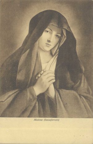 Giovanni Battista Salvi da Sassoferrato (naamvariant: Sassoferrato) werd in 1609 in Sassoferrato gebren en overleed op 8 april 1685 in Rome.