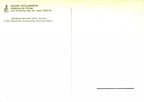 Jan Joest van Calcar (naamvarianten: Jan Joest, Jan Joets van Calcker, Jan Joest van Haarlem, Jan Joesten, Jan Joost van Harlem, Jan Joost van Kalkar, Johannes Jodoci, Juan de Holanda) werd tussen 1455 en 1460 in Wesel geboren en overleed in 1519 in Haarlem. Over zijn kunstzinnige opleiding / training is niets bekend. Wel weten we dat hij Bartholomäus (I) Bruyn en Jost van Cleve opleide. Als schilder, beeldhouwer en tekenaar zijn van hem vooral zijn historische- en christelijk-religieuze voor...