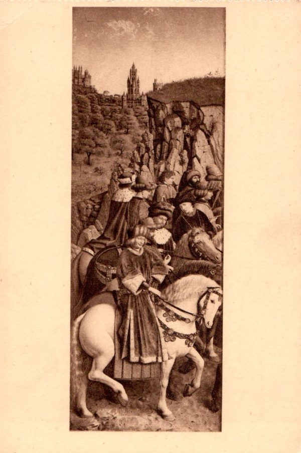 Deze kaart werd onder verschillende titels uitgegeven, te weten: Les Chevaliers du Christ (2x dezelde), Les Juges intègre (3x zelfde uitgever met verschillend kaartnummer) en fragment du tableau (l’Agneau Mystique).