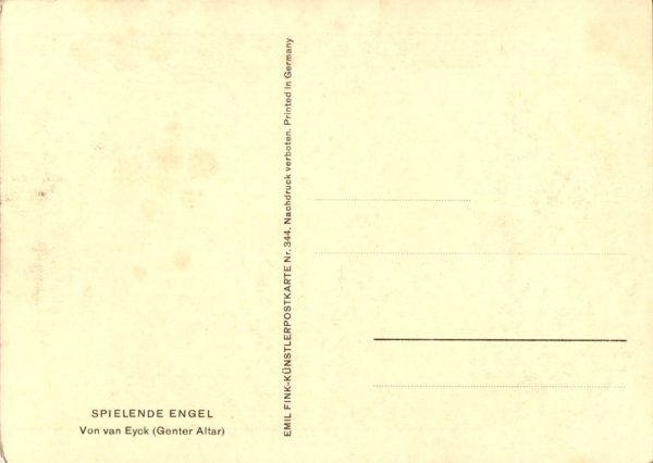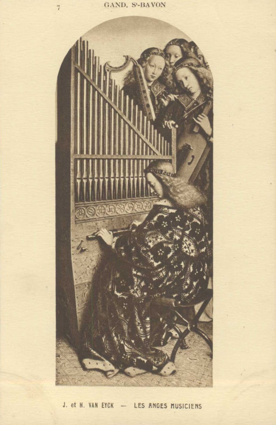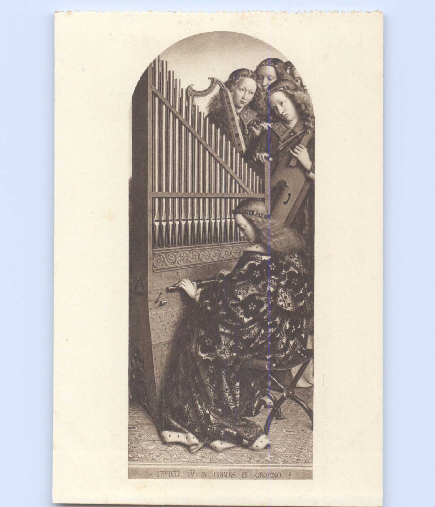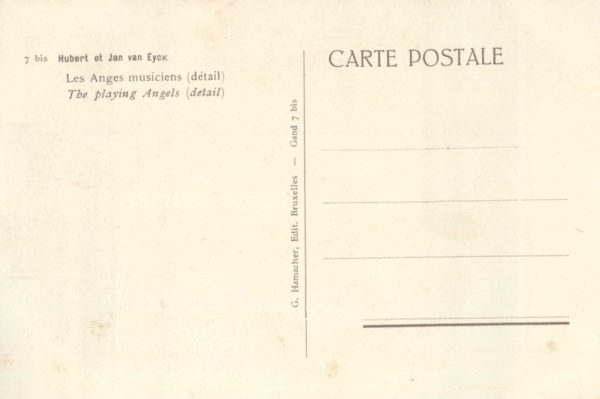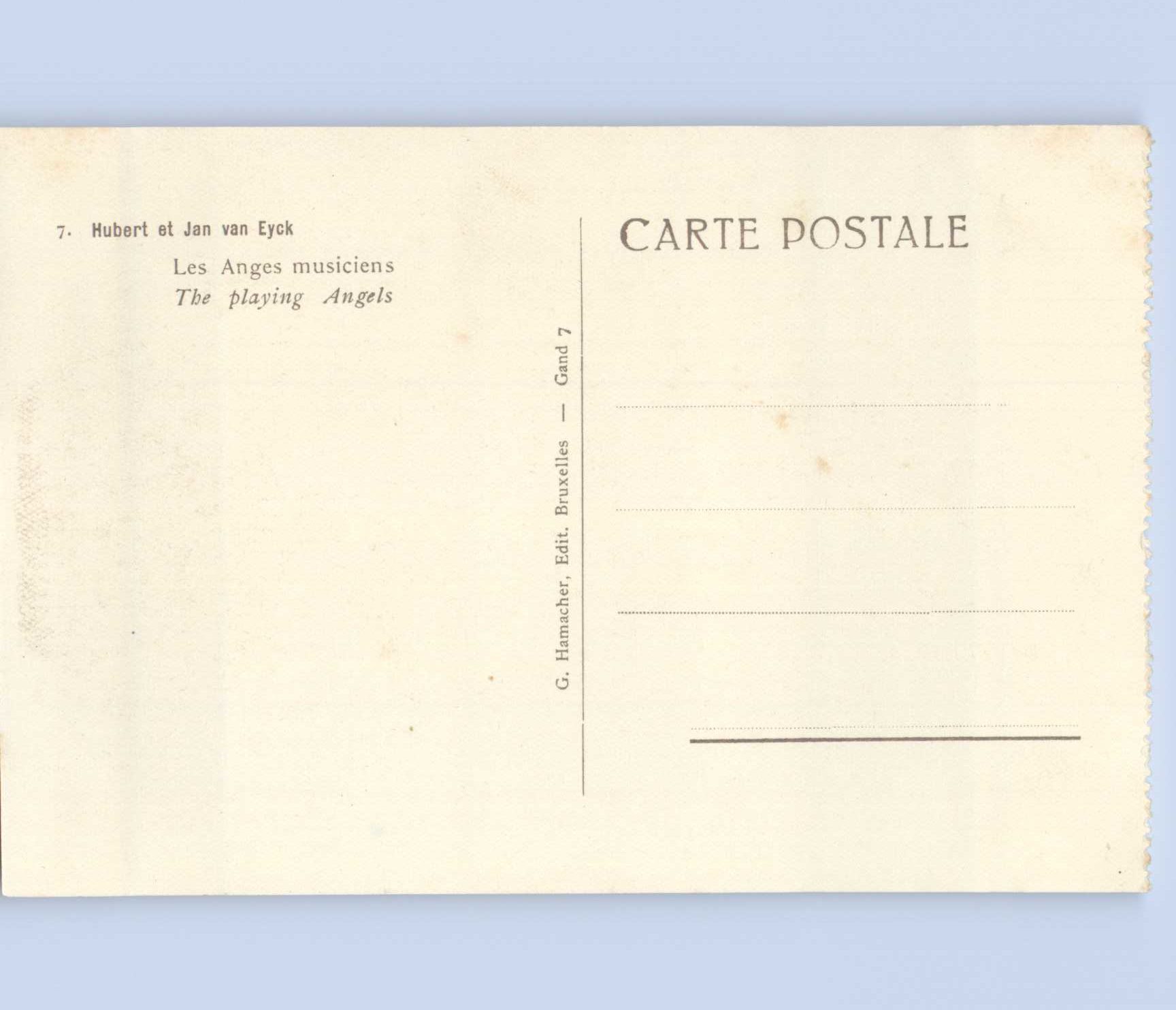 Van dit magistrale werk van de gebroeders van Eyck ‘Aanbidding van het Lam Gods’ zijn in de collectie zowel détail- (COL 1019.003) als overzicht-ansichtskaarten (COL 1019.003b en COL 1019.005.001 e.v.) opgenomen.