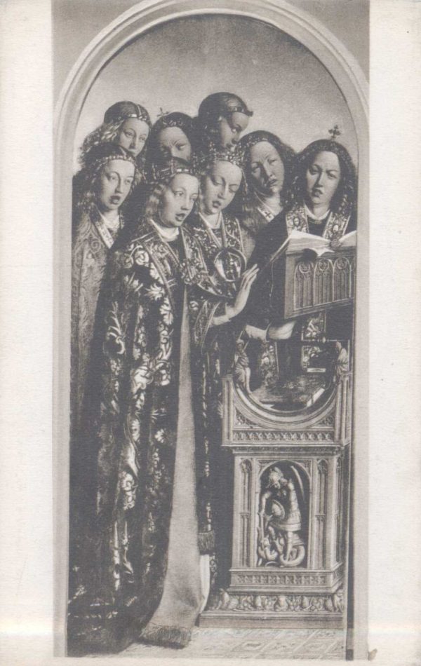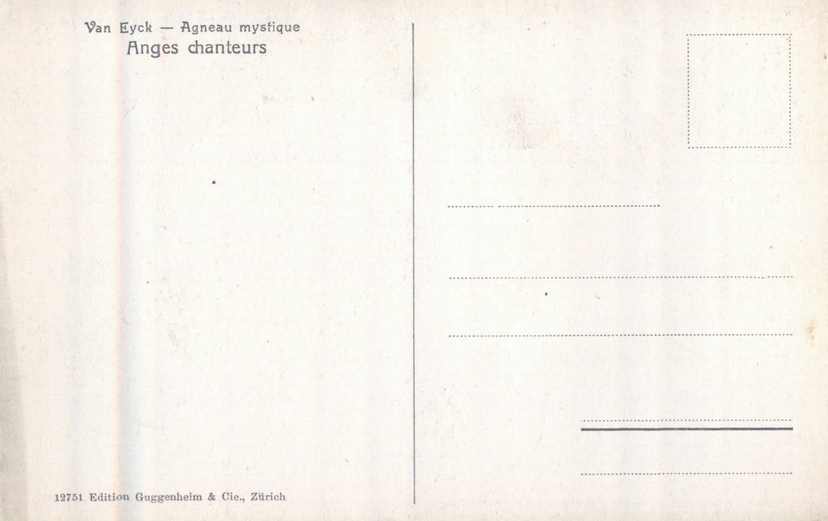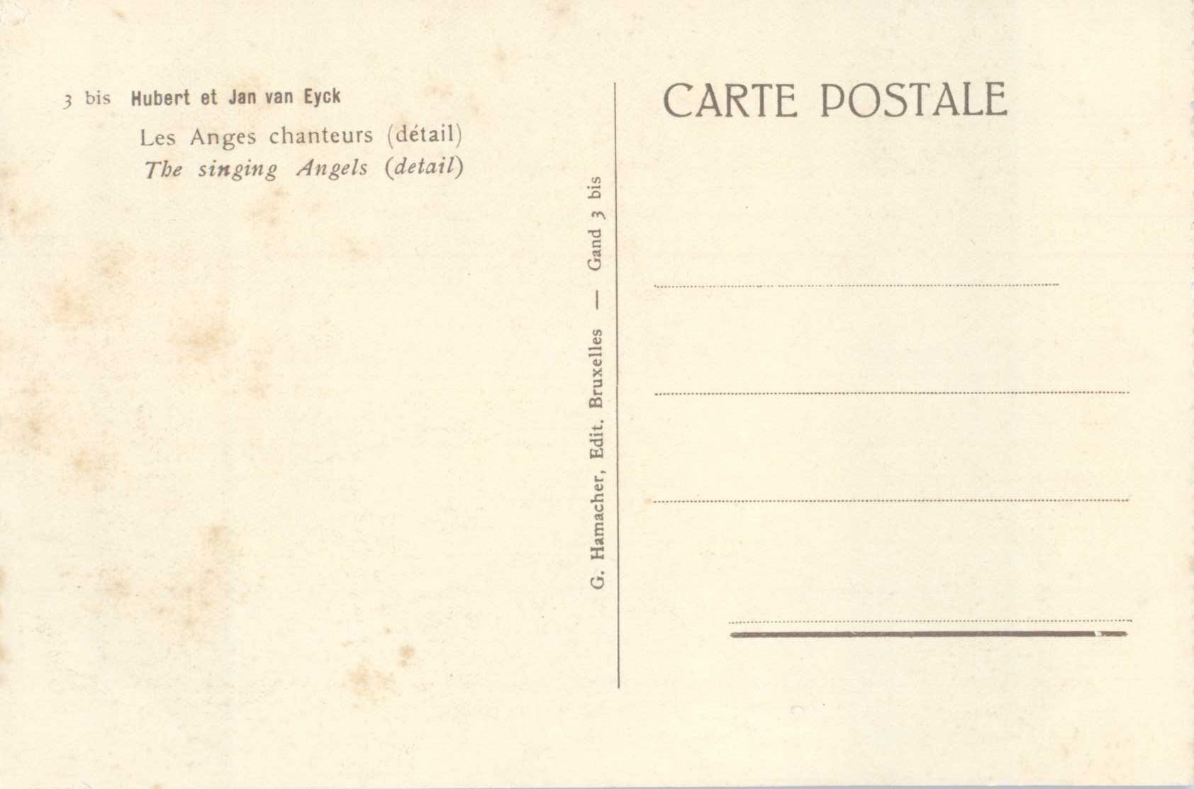 Van dit magistrale werk van de gebroeders van Eyck ‘Aanbidding van het Lam Gods’ zijn in de collectie zowel détail- (COL 1019.003) als overzicht-ansichtskaarten (COL 1019.003b en COL 1019.005.001 e.v.) opgenomen.