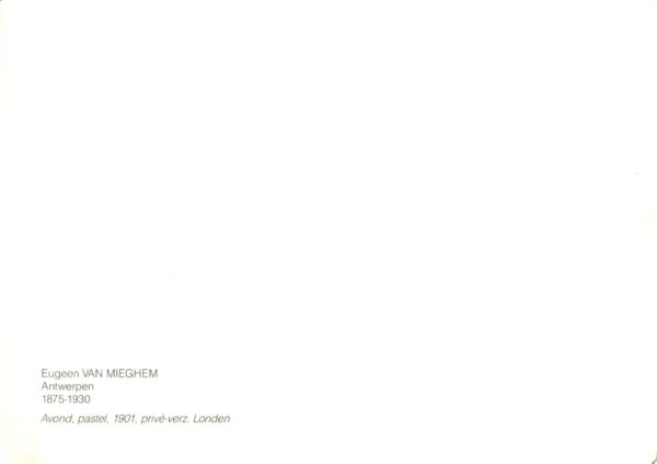 Eugeen van Mieghem (Eugène Van Mieghem, Eugène van Mieghem, Eugeen van Mieghem) werd op 1 oktober 1875 in Antwerpen geboren en overleed daar ook p 24 maart 1930. Eugeen volgde een kunstzinnige opleiding aan de Koninklijke Academie voor Schone Kunsten in Antwerpen en was onder andere leerling bij Eugène Siberdt. Op latere leeftijd telde hij onder zijn eigen leerlingen (hij was inmiddels zelf benoemd als leraar aan de Antwerpse academie) C ees van IJsseldijk. Eugeen was actief als aquarel...