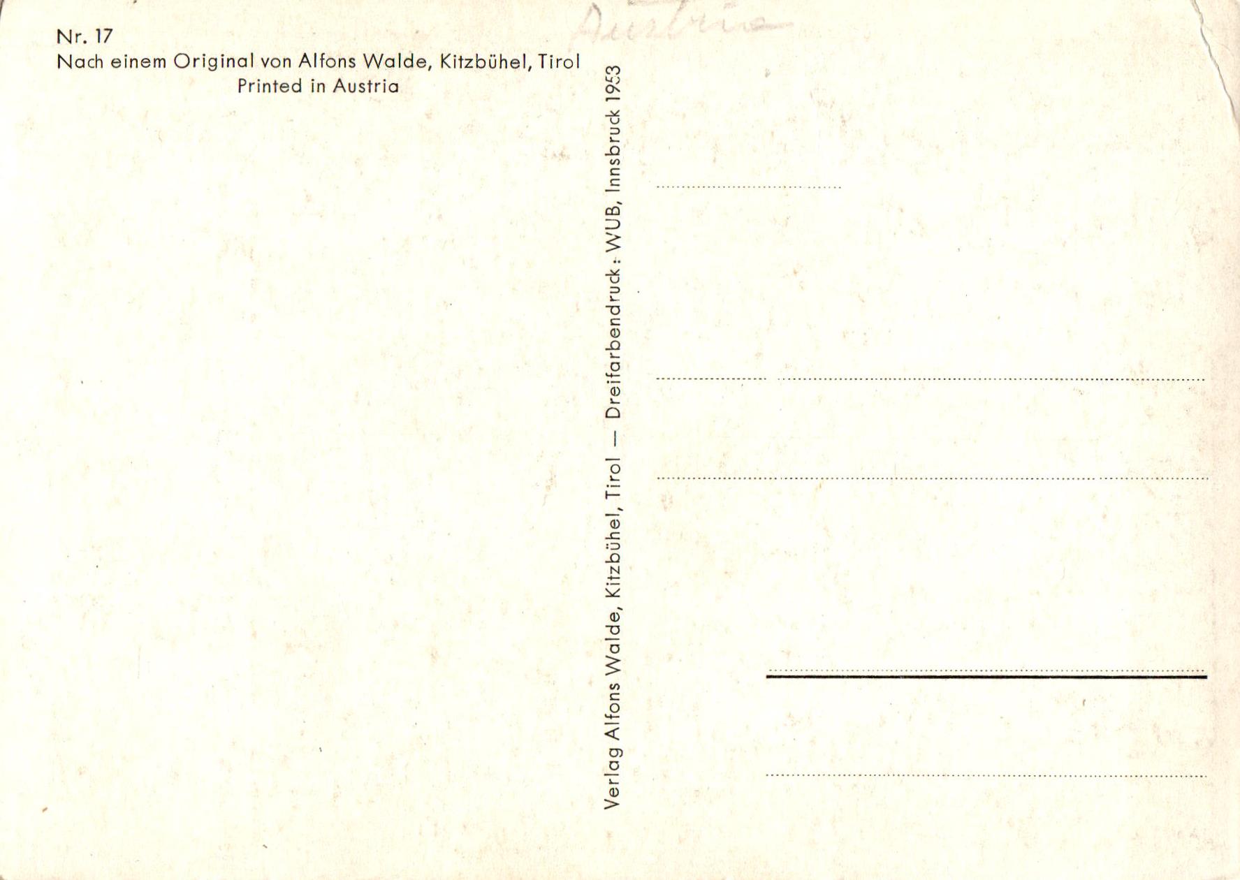 Alfons Walde werd op 8 februari 1891 in Oberndorf bei Salzburg geboren en overleed op 11 december 1958 in Kitzbühel (Oostenrijk). Voor zover ons bekend volgde hij buiten een vaktechnische opleiding tot architect geen specifieke kunstzinnige opleidingen. Toch schilderde hij meer dan verdienstelijk. Vermeld in Thieme / Becker, Vollmer, Witt Checklist, Bénézit, Saur.