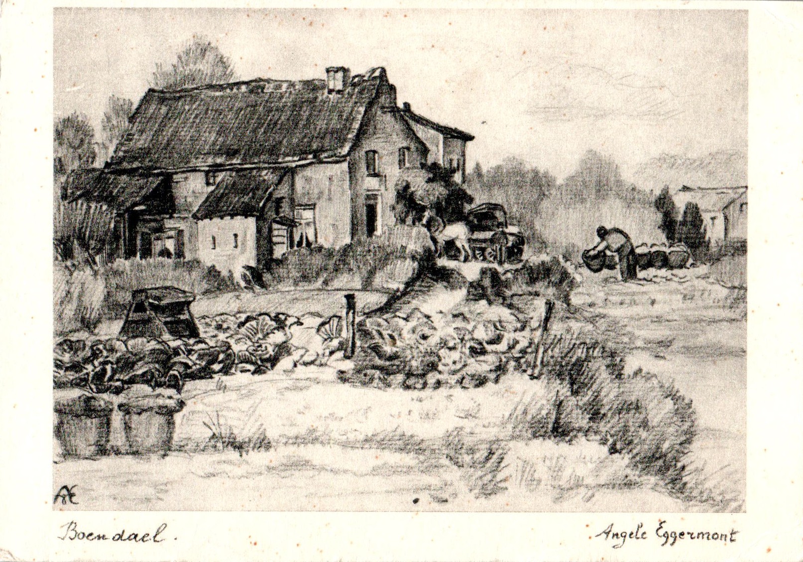 Angèle Eggermont werd geboren in Schaarbeek in 1878 en overleed in Brussel in 1958). Zij was een Belgische kunstenares die bekendstond om haar schilderijen, tekeningen en etsen van landschappen en stadsgezichten. Ze was de echtgenote van de kunstschilder en criticus Armand Eggermont (1883–1965). Samen met haar man reisde ze veel, wat een grote invloed had op haar werk. Naast de regio Brussel (in de buurt Boondael) vond ze veel inspiratie in Zuid-Frankrijk (Villefranche, Arles) en Ita...