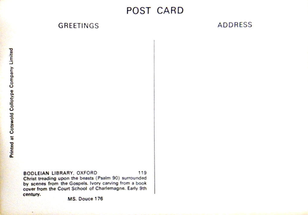 Christus die de dieren vertrapt (psalm 90) omringd door scènes uit de Evangeliën.