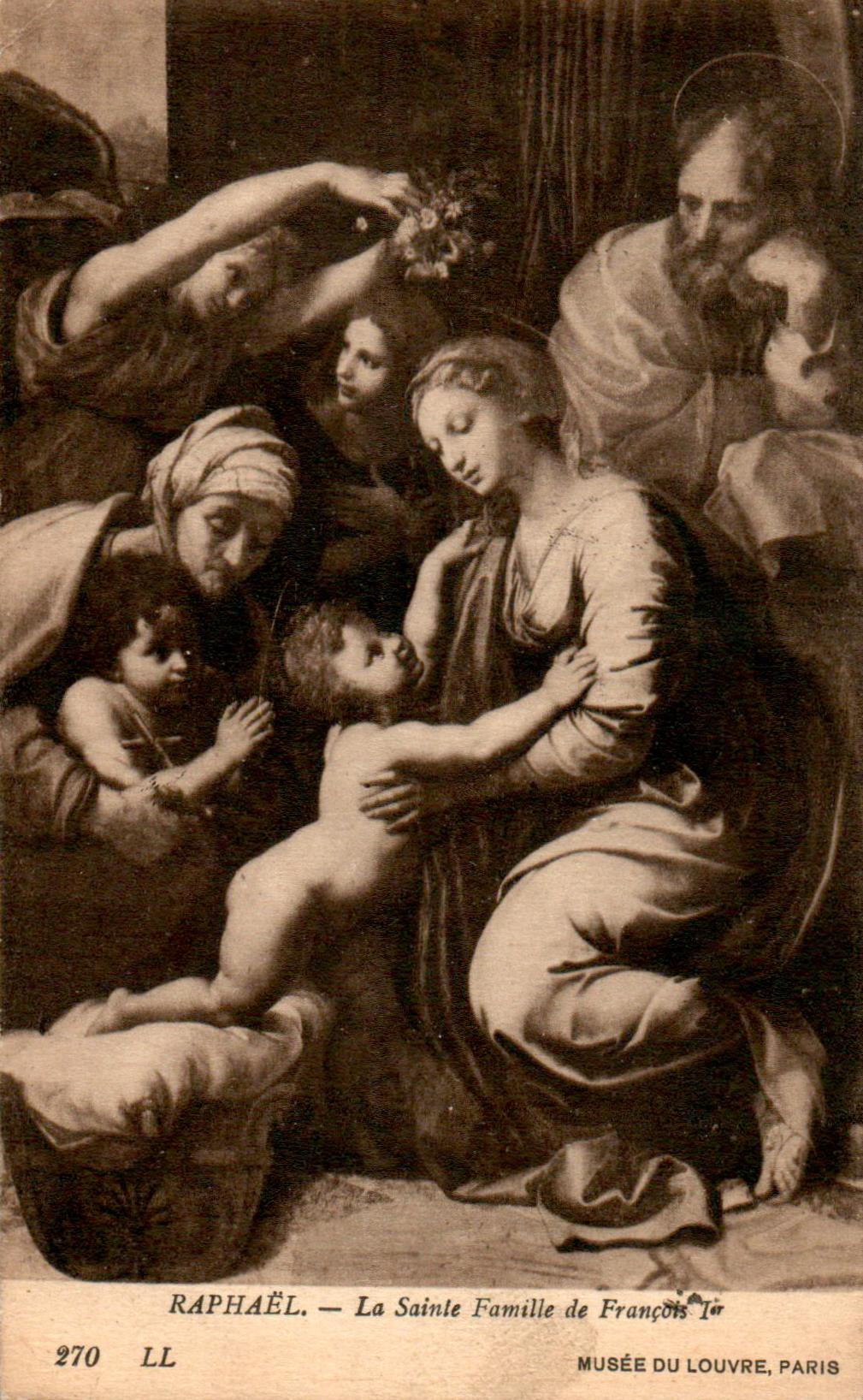 De collectie bevat zowel een zw-ansichtkaart-, en zw-briefkaart- als een kleurenversie ansichtkaart van dit werk van Rafaël.