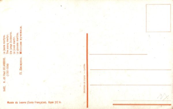 Van dit werk van Delaroche bevat de collectie een vijftal versies [COL 1433.002, (13,9 x 9); COL 1433.002b, (14 x 9,1); COL 1433.002c, (14,5 x 9,7) 1); kleurenversie: COL 1433.002d, (13,7 x 8,78); COL 1433,003e, (13,8 x 8,8].