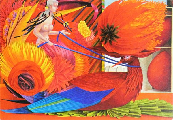 Van meerdere kunstenaars worden voortdurend – in dit geval van Wolfgang Hutter weliswaar na zijn dood – kunstwerken verspreid via nadrukken of zoals in dit geval middels ansichtkaarten. Deze werd uitgegeven door Kunstverlag Wolfrum, Wenen (zie ook de tweede foto, nr. 6356). Een terecht initiatief, want dit surrealistische werk werk boeit de kunstliefhebber zeer. Het origineel bevindt zich in de collectie van de familie Hawelka.