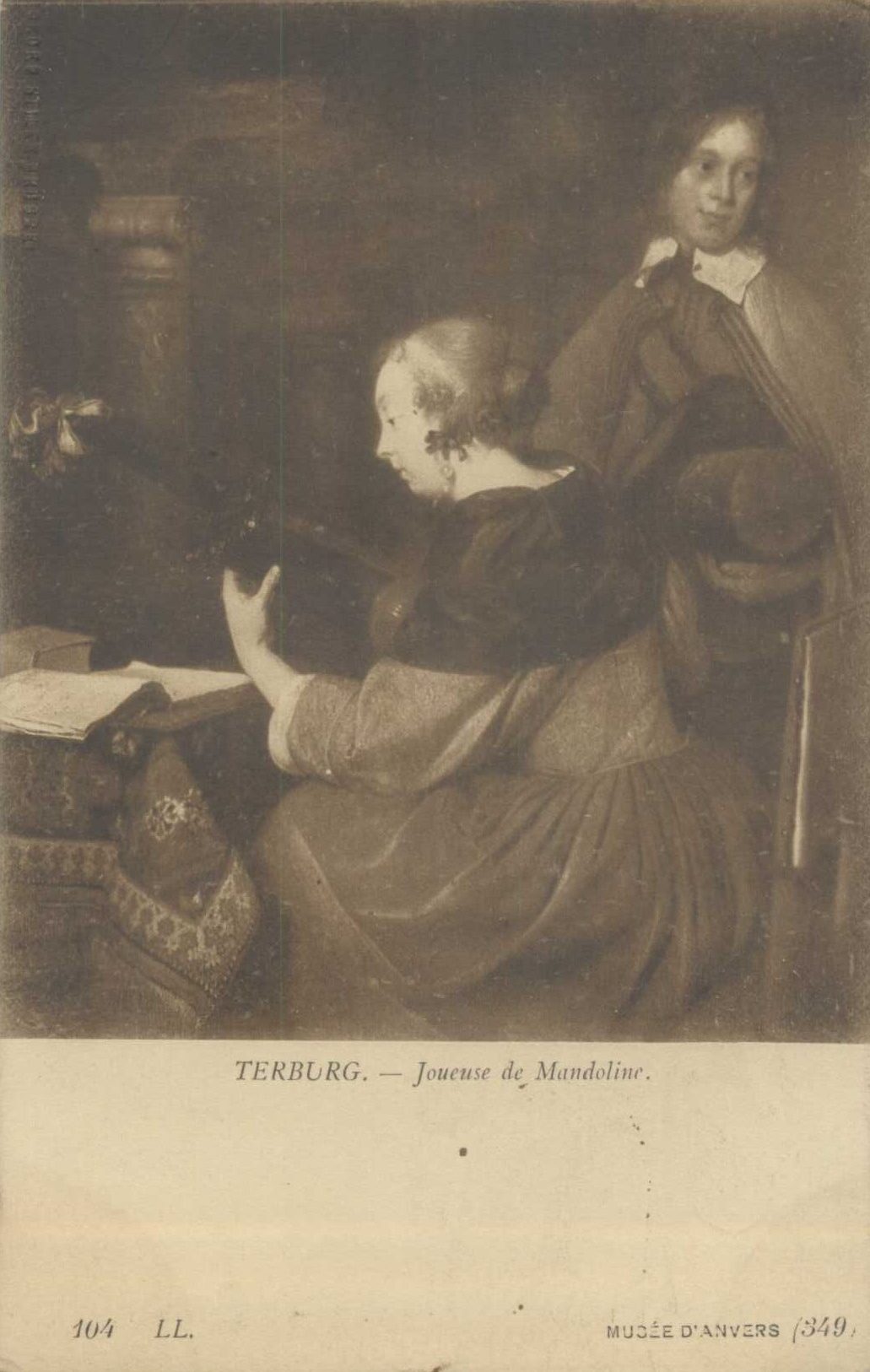 Van meerdere kunstenaars worden voortdurend – in dit geval van de overbekende Nederlandse kunstschilder Gerard Ter Borgh – kunstwerken verspreid via nadrukken of zoals in dit geval middels ansichtkaarten. Uitgever / initiatiefnemer van deze ansichtkaart is het Museum van Schoone Kunsten, Antwerpen (zie tweede foto). Een goed initiatief, zowel cultureel als economisch. Het werk zelf bevindt zich in het Museum van Schoone Kunsten, Antwerpen.