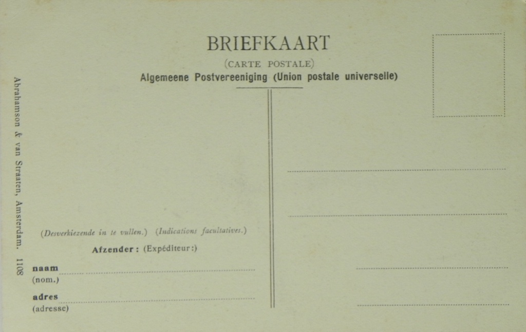 | 8. uitgever | Abrahamson & Van Straaten, Amsterdam, Felix P. Abrahamson, Amsterdam, Firma S. Middelkamp, Krommenie, J.W. Schnepper, Amsterdam, n.v.t. / kunstenaar zelf / onbekend, Rijksmuseum, Amsterdam, Union postale universelle |