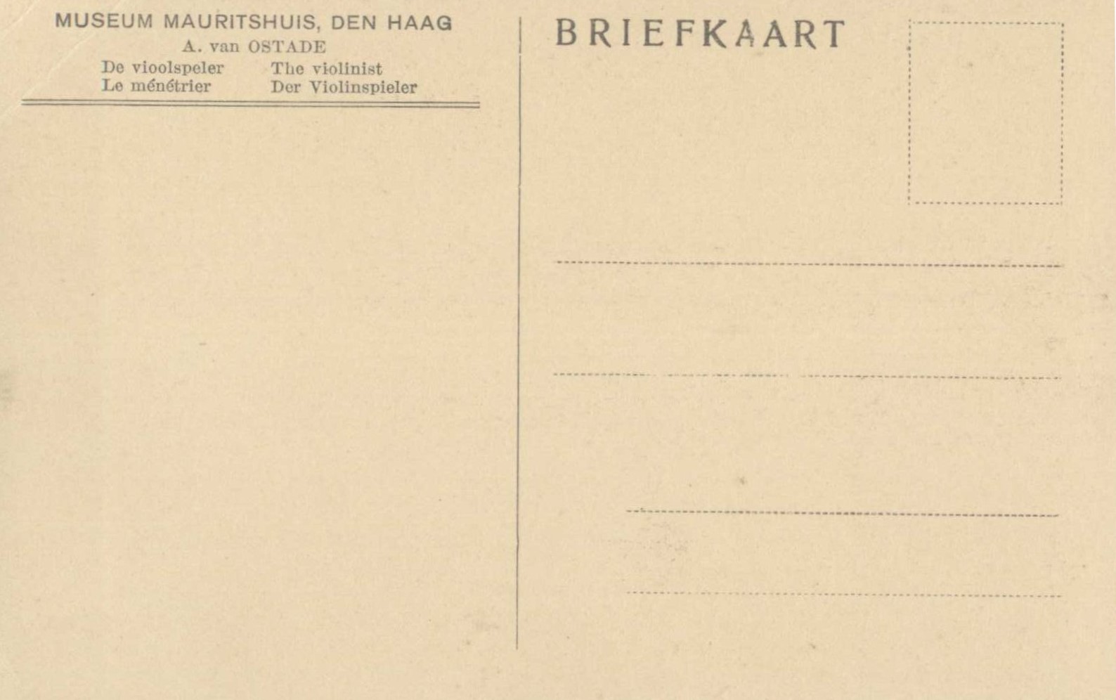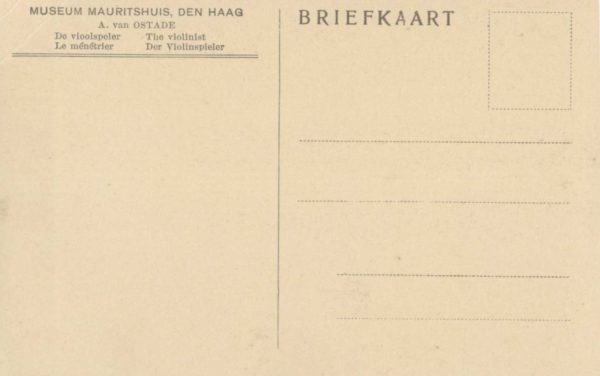 De collectie bevat zowel een zw- als twee kleurenversie ansichtkaarten (COL 1246.004 resp. COL 1246.004b, COL 1246.003d). Daarnaast is er ook een door het Mauritshuis uitgegeven briefkaartversie aan de collectie toegevoegd (COL 1246.004c).