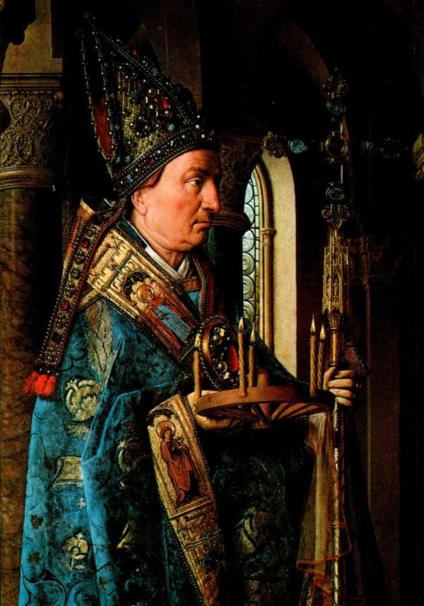 De collectie bevat meerdere (détail) ansicht- / postkaarten van het werk ‘Madonna met kanunnik Joris van der Paele’ welke zich in het Groeningemuseum in Brugge bevindt. Zie o.a. ook COL 1777.004, COL 1777.009, COL 1777.013