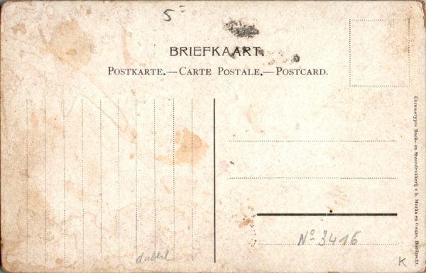 Opm.: reclame-uiting als muurbord op schoonzijde van kaart COL 2355.032. Ook zijn aan de collectie (gelopen) brief- / ansichtkaart toegevoegd (COL 2355.032b, COL 2355.032d).
