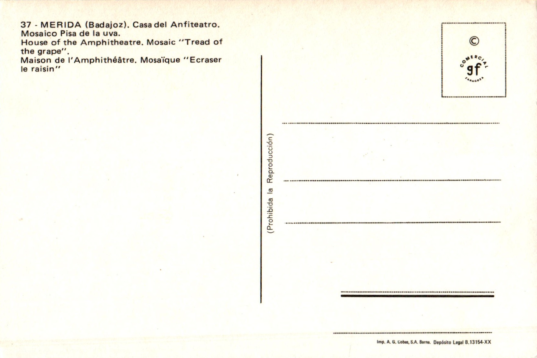 Dit mozaíek uit de 2de eeuw na Christus ‘het treden der druiven voor de wijnproductie’ bevindt zich in het Huis van het Amfitheater in Mérida (Augusta Emerita).