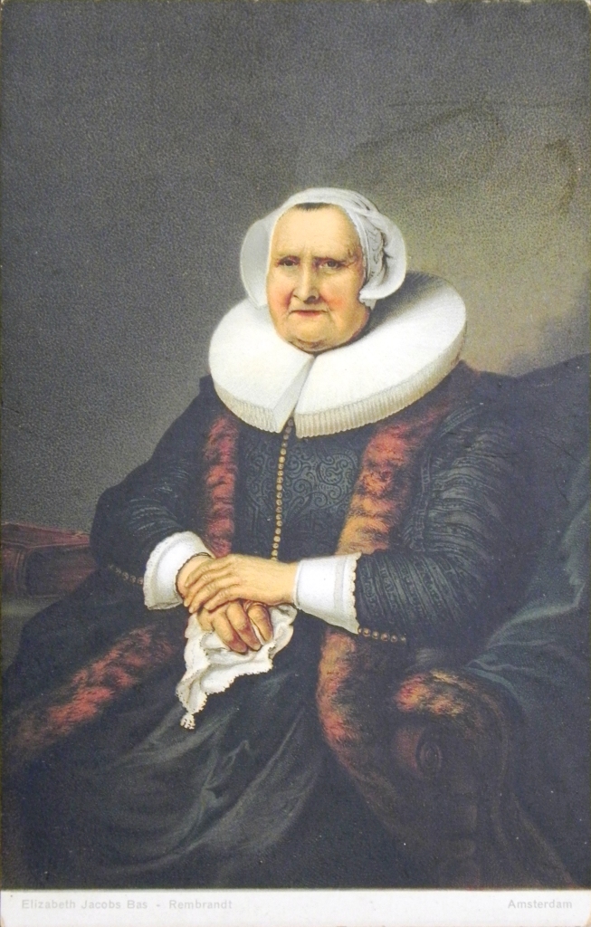 Van vele kunstenaars worden voortdurend – in dit geval van Rembrandt – kunstwerken verspreid middels ansichtkaarten. De gezamenlijke uitgevers van deze ansichtkaart zijn Stengel & Co. GmbH Dresden en Misch & Co. “World Galleries” (zie de tweede foto, serie No. 1084 – nr. 29102). Tevens kwam er destijds van Abrahamson & Van Straaten ook een zw-Briefkaartversie uit (COL 984.007b). Het origineel bevindt zich in het British Museum, Londen.