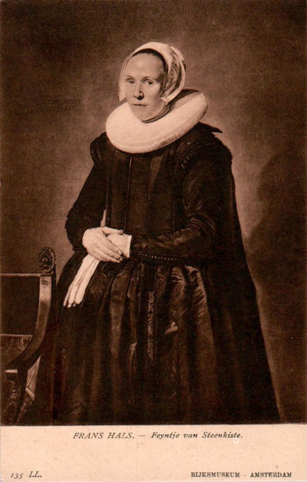 Feyntje van Steenkiste kwam uit een rijke familie die actief was in de Haarlemse textielindustrie, net als haar man Lucas de Clercq en diens familie. Door hun huwelijk werden de zakelijke banden tussen de families versterkt. Haar welvaart en doopsgezinde geloof zijn terug te zien in haar kleding. Chic, maar sober. Anders dan veel tijdgenoten draagt ze bijvoorbeeld maar een klein randje wit kant bij haar polsen.