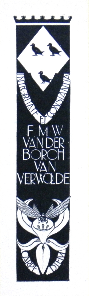 Jkvr Jeanne Bieruma Oosting ontwierp deze ex libris voor F.M.W. van der Borgh van Verwolde.