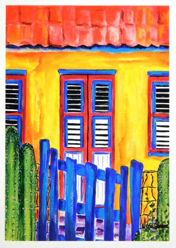 Van meerdere kunstenaars worden – of verzorgen ze impliciet zelf – kunstwerken verspreid via nadrukken of zoals in dit geval middels ansichtkaarten. Deze werd uitgegeven door Orient – Sun Trading, L.T.D., Curaçao. Een goed initiatief want het werk van Nena Sánches boeit steeds zeer.