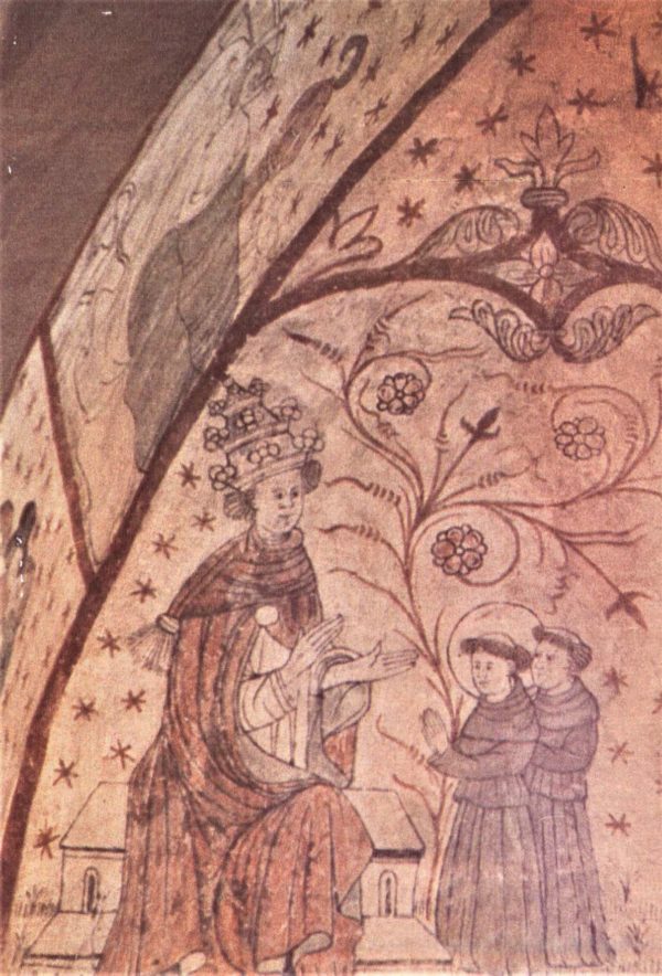 Van vele kunstenaars worden voortdurend – in dit geval van een onbekende fresco-ontwerper – kunstwerken verspreid middels ansichtkaarten. De uitgever van deze ansichtkaart is Werkgroep K.750, Maliesingel 74 – Utrecht (zie ook tweede foto). Het origineel bevindt zich in een voormalige Fransiscaner kerk in Arboga in Zweden.