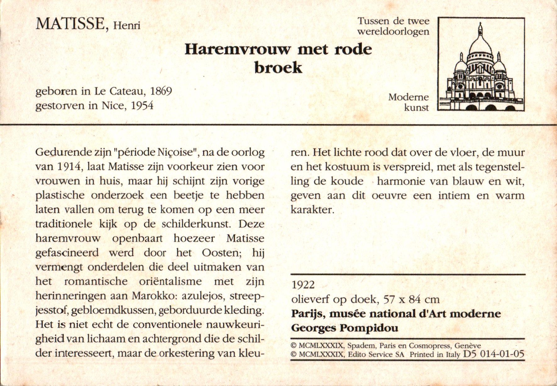 Klik hier voor de hele levensbeschrijving en al onze werken van Matisse, Henri.