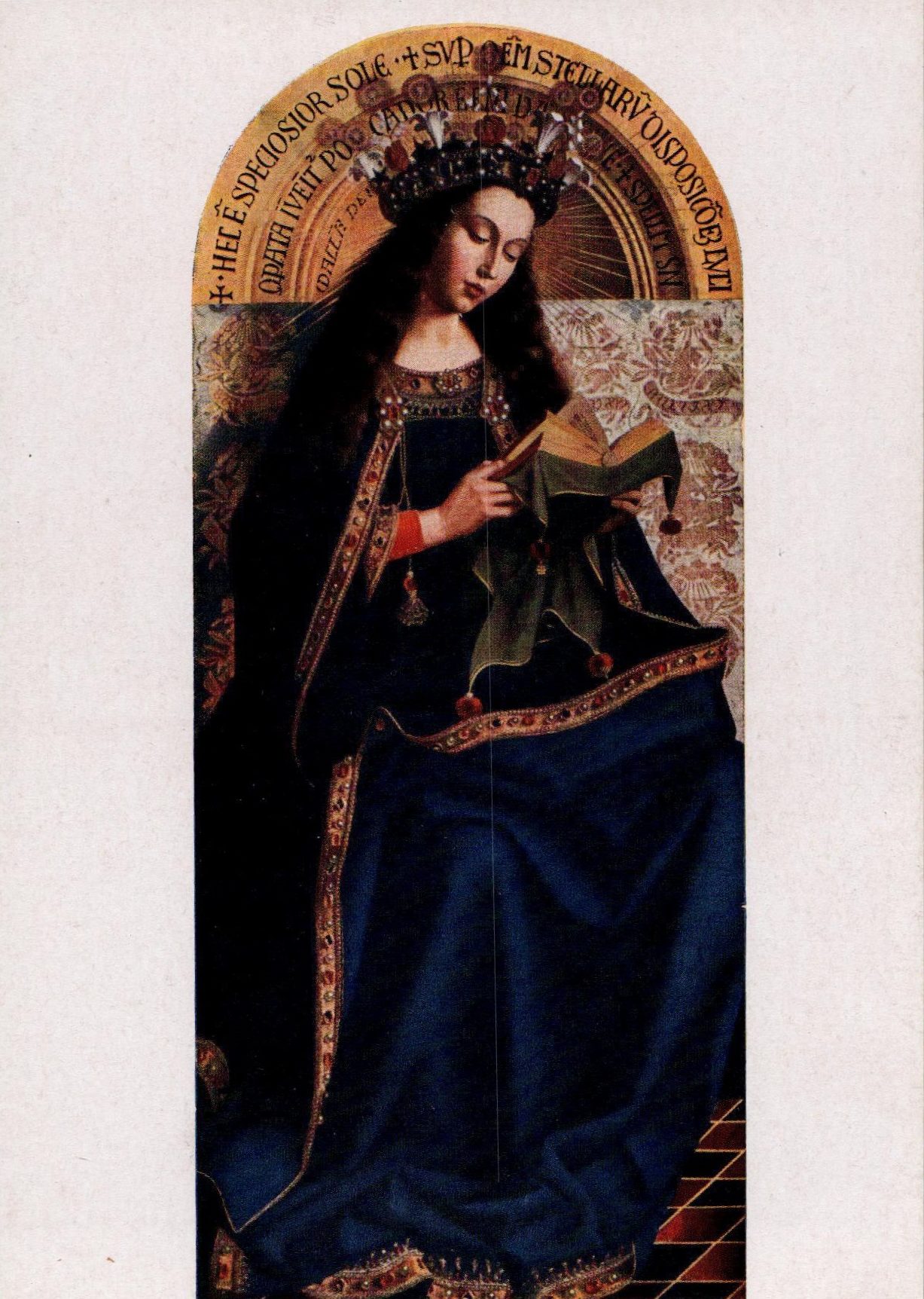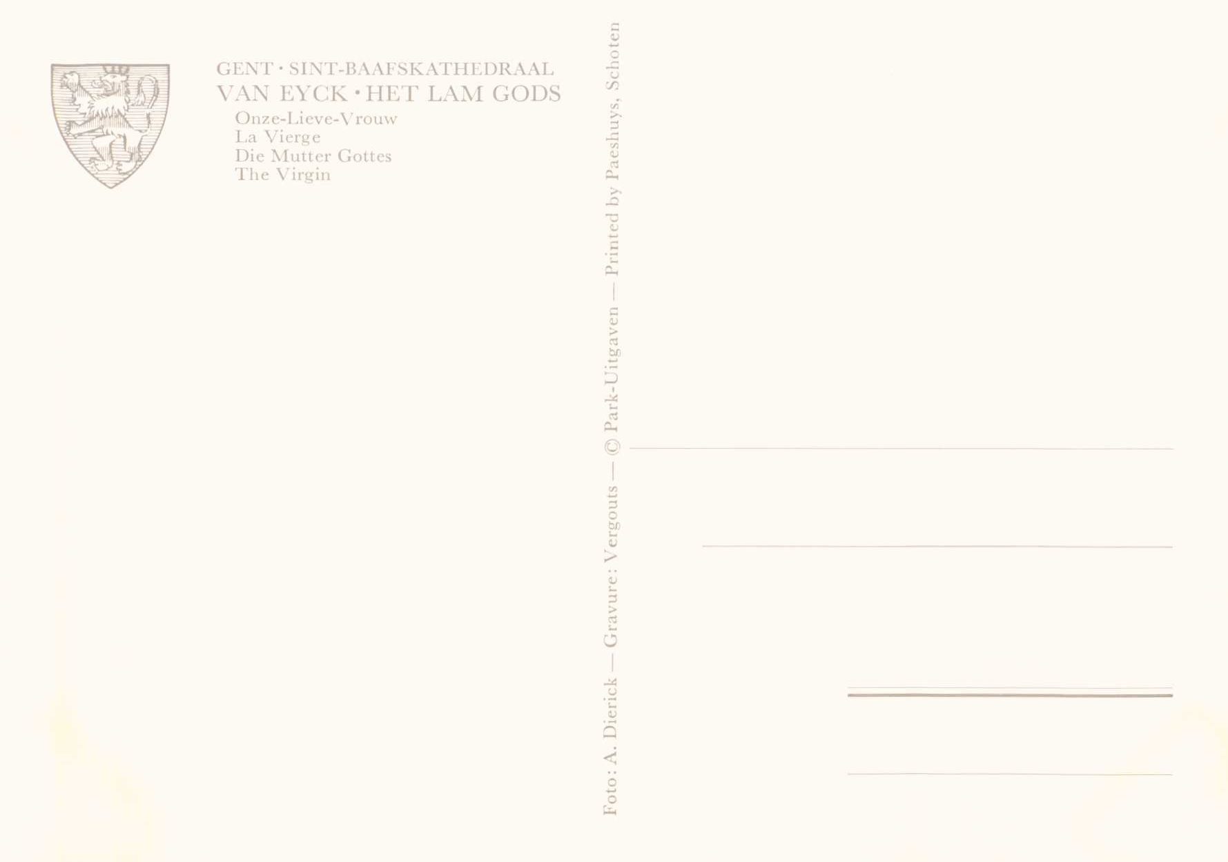 Toegevoegd zijn kaarten met détails en in kleur (COL 1019.004b; COL 1019.004c; COL 1019.004d; COL 1019.004e) van de Maagd Maria als deel van het van het Lam God’s.