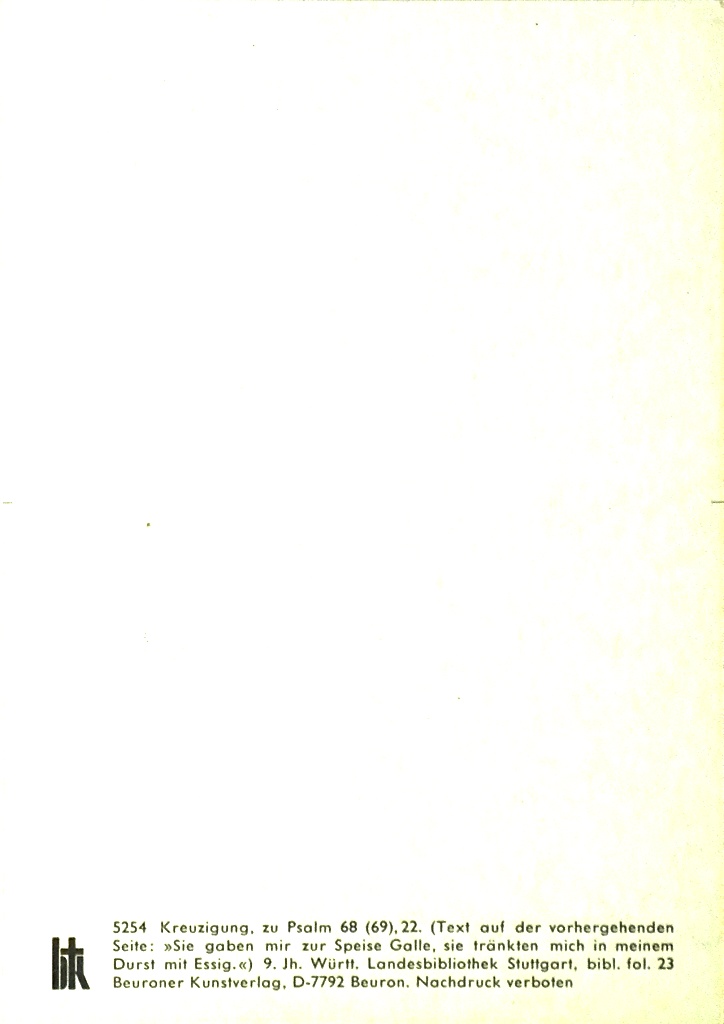 Psalm 68 (69), 22. (zij gaven mij gal te eten; zij lessen mijn dorst met azijn.).