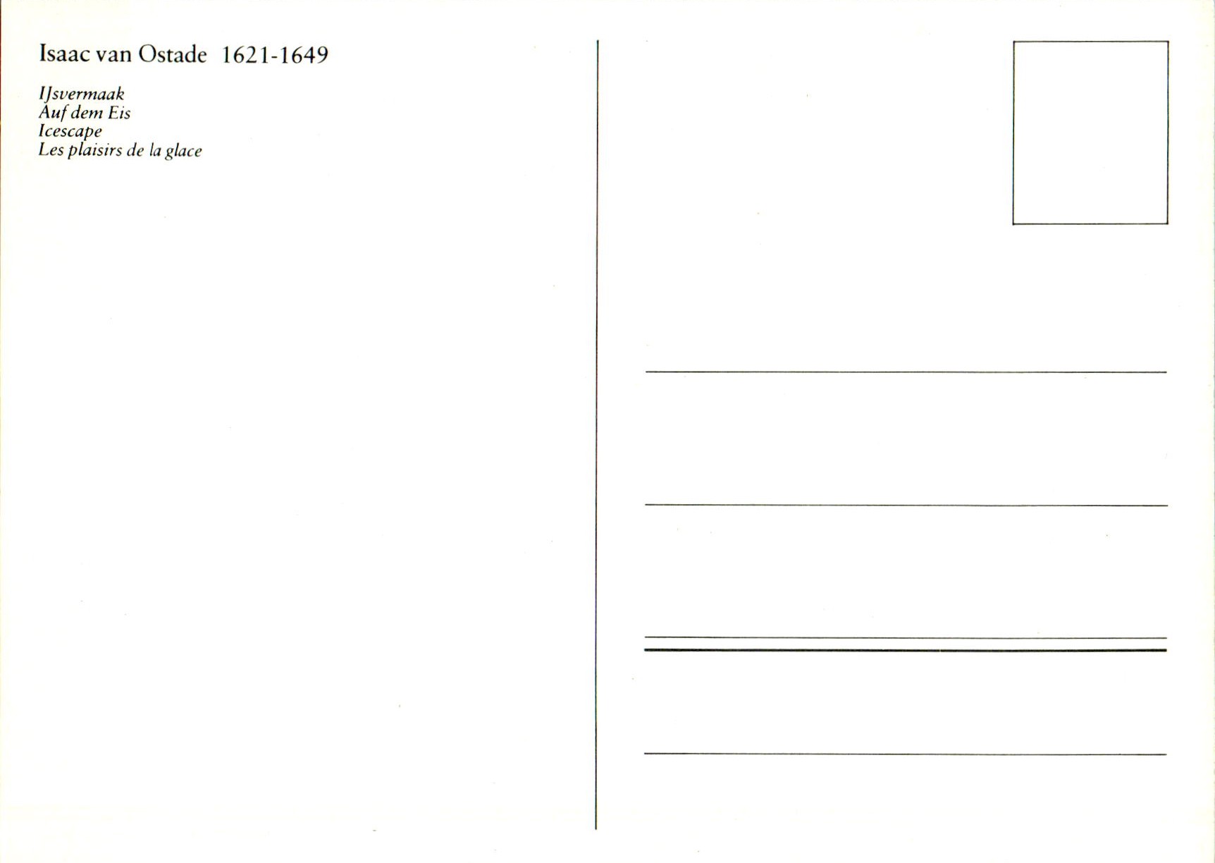 Isaac van Ostade werd op 2 juli 1621 in Haarlem gedoopt en daar op 16 oktober 1649 begraven. Hij was niet alleen een jongere broer van Adriaen van Ostade maar ook zijn leerling. Als schilder was hij voornamelijk actief in Haarem. In 143 werd hij lid van het Sint-Lucasgilde in Haarlem. Zijn werken betroffen vooral genre- en figuurvoorstellingen naast landschappen en portretten. Vermeld in Thieme / Becker, Witt Library, Karel van Mander, Houbraken, Kinkelder.