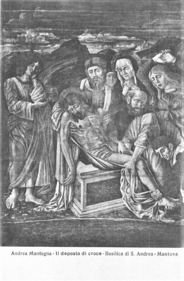 Andrea Mantegna werd in 1430 of 1431 op Isola di Cartura (provincie Padova) geboren en overleed op 13 september 1506 in Mantua ((provincie Mantua). Hij was de vader van Fransesco Mantegna. Andrea werd onder andere opgeleid door Fransesco Squarcione (en werd sterk beïnvloed door Andrea del Castagno, Donatello, Niccolò Pizzolo en Paoloen Uccello) en was op latere leeftijd zelf leraar van Bono da Ferrara, Gioacomo Calvano, Giovanni Fransesco Caroto, Fincenzo Foppa, Francesco Mantegna en Nicco...