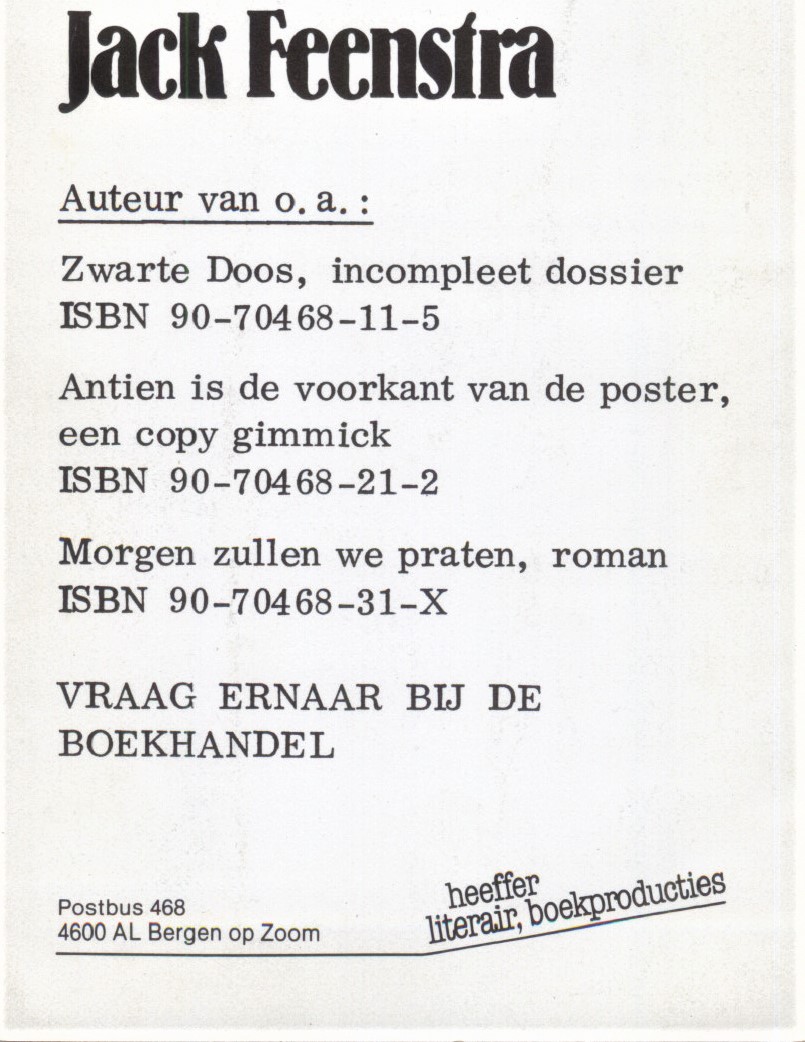 Heeft u een vraag of opmerking over 'Jack Feenstra'? Dan vernemen wij dat graag. Gebruik daarvoor het onderstaande formulier.
