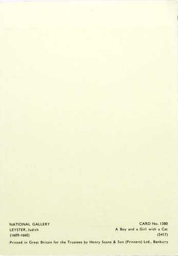 Van vele kunstenaars worden voortdurend – in dit geval van Judith Leyster – kunstwerken verspreid middels ansichtkaarten. De uitgever van deze ansichtkaart is de National Gallery, Londen (zie ook tweede foto, nr.1380). Het origineel bevindt zich in de National Gallery, Londen.
