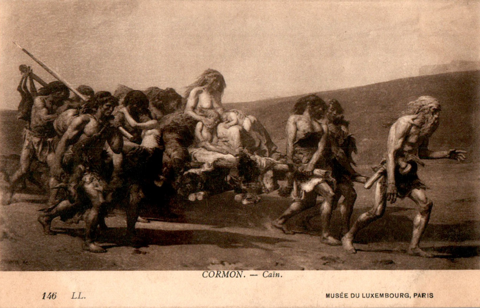 Het verhaal van Kaïn en zijn broer Abel wordt verteld in het Oude Testament, in het boek Genesis. Kaïn vermoordde zijn broer en werd vervolgens door God vervloekt en verbannen. Het schilderij toont vermoedelijk zijn vlucht.