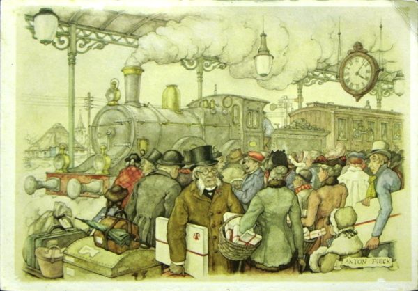 Van vele kunstenaars worden voortdurend – in dit geval van Anton Pieck – kunstwerken verspreid middels (kerst)kaarten. De uitgever van deze ansichtkaart is RIJAM Verkoop (zie tweede foto). Waar het origineel zich bevindt is ons niet bekend, vermoedelijk bij de uitgever. Pieck ontwierp deze kaart als kerstkaart.