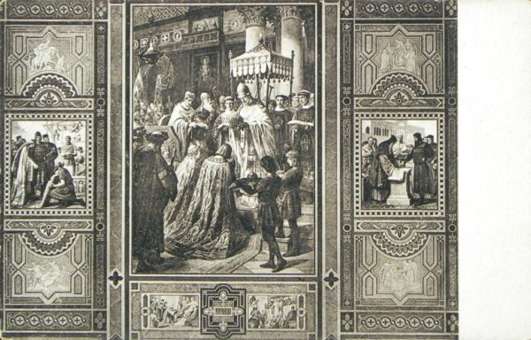 Van vele kunstenaars worden voortdurend – in dit geval van Hermann Wislicenus – kunstwerken verspreid middels ansichtkaarten. De uitgever van deze ansichtkaart is Julius Brumby Verlag, Goslar (Nedersaksen) (zie ook tweede foto). Het origineel bevindt zich in Kaiserhaus zu Golslar (zie ook tweede foto van de gehele ansikchtkaart).