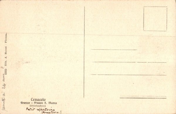 Hier een zw ansichtkaart van Ghirlandaio’s Laatste Avondmaal (fresco) in de kleine eetzaal van het Museo S. Marco in Florence.