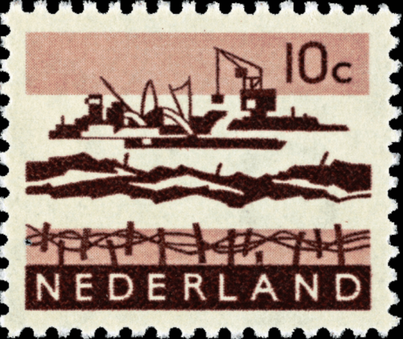 Jan van Heel ontwierp samen met André van der Vossen en Rein Draijer de landschapspostzegels 1962. Hier de ‘Landschapsimpressie Deltawerken’ van Jan van Heel (zie ook COL 282.003 en COL 734.006). Hij maakte zich net zoals vele van zijn tijdgenoten zeer verdienstelijk met alledaagse ‘kunst’zaken zoals het in opdracht ontwerpen van kleingrafiek.