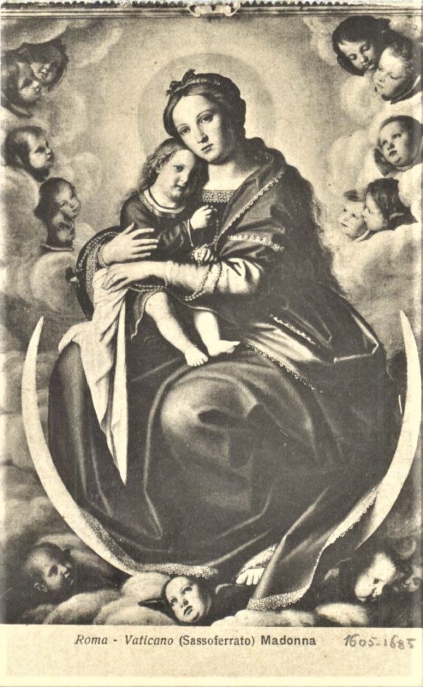 Giovanni Battista Salvi da Sassoferrato (naamvariant: Sassoferrato) werd in 1609 in Sassoferrato gebren en overleed op 8 april 1685 in Rome. Mogelijk werd hij door zijn vader opgeleid tot schilder em stond daarnaast sterk onder de invloed van Guido Reni en Rafaël. Later trad hij zelf tor tot de Fransiskaner Broedersachap. Hij maakte vornamelijk christelijk-religieus werk en (zelf)portretten. Als kunstenaar wordt hij tot de barok gerekend.