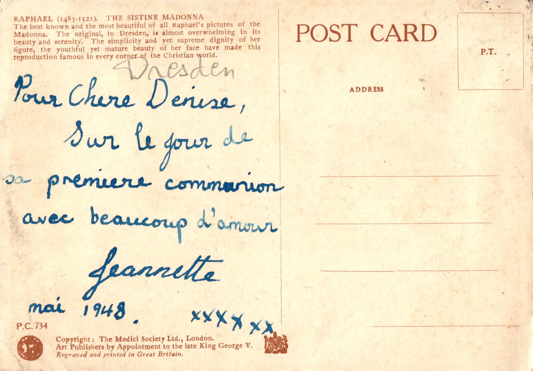 Tevens aan de collectie toegevoegd een détailpostkaart door de Medici Society uitgegeven en ansichtkaarten van Ackermann en Trenkler.