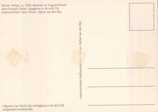 Deze kaart werd door Altrium gedistribueerd via de ICOB-boekhandels en diende als reclame vóor een boek over Renoir, geschreven door François Daulte.