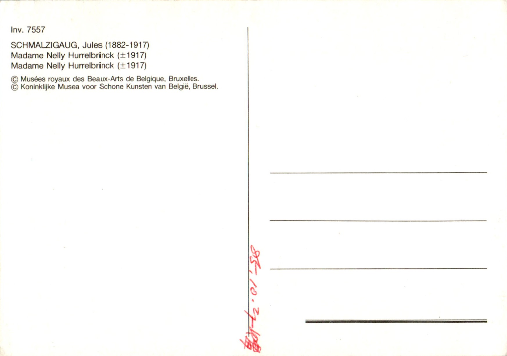 Jules Schmalzigaug werd op 26 september 1882 in Antwerpen geboren en overleed op 12 mei 1917 in Den Haag. Hij was actief als kunstschilder etser en tekenaar. Van jongs af aan leed hij aan scoliose en werd naar het buitenland gestuurd voor behandeling. In die tijd werd ook zijn tekentalent ontdekt door Paul Riess. Hij schreef zich in op de Brusselse kunstacademie en volgde er lessen bij Isidore Verheyden. Daarna volgde hij lessen aan de Staatliche Akademie der Bildenden Künste in Karlruh...