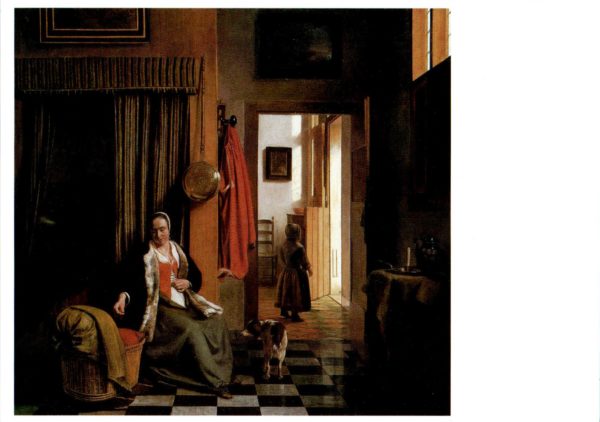 Van meerdere kunstenaars worden voortdurend – in dit geval van Pieter de Hooch maar pas lange tijd na zijn dood – kunstwerken verspreid via nadrukken of zoals in dit geval middels ansichtkaarten. Deze werden uitgegeven door Gemäldegalerie Berlin, het Staatliche Museen Preußischer Kulturbesitz en Ackermanns Kunstverlag. Een terecht initiatief, want deze schildering verrast zelfs als ansichtkaart. Het werk zelf maakt deel uit van de Gemäldegalerie Berlin, het Staatliche Museen Preußischer Kulturbesitz, Berlin.