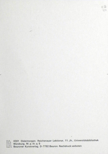 Van vele kunstenaars worden voortdurend – in dit geval van een onbekende kunstenaar – kunstwerken verspreid middels ansichtkaarten. De uitgever van deze ansichtkaart is Beuroner Kunstverlag, Beuron (zie ook tweede foto, nr. 4341). Het origineel bevindt zich in de Universitätsbibliotek, Würzberg.